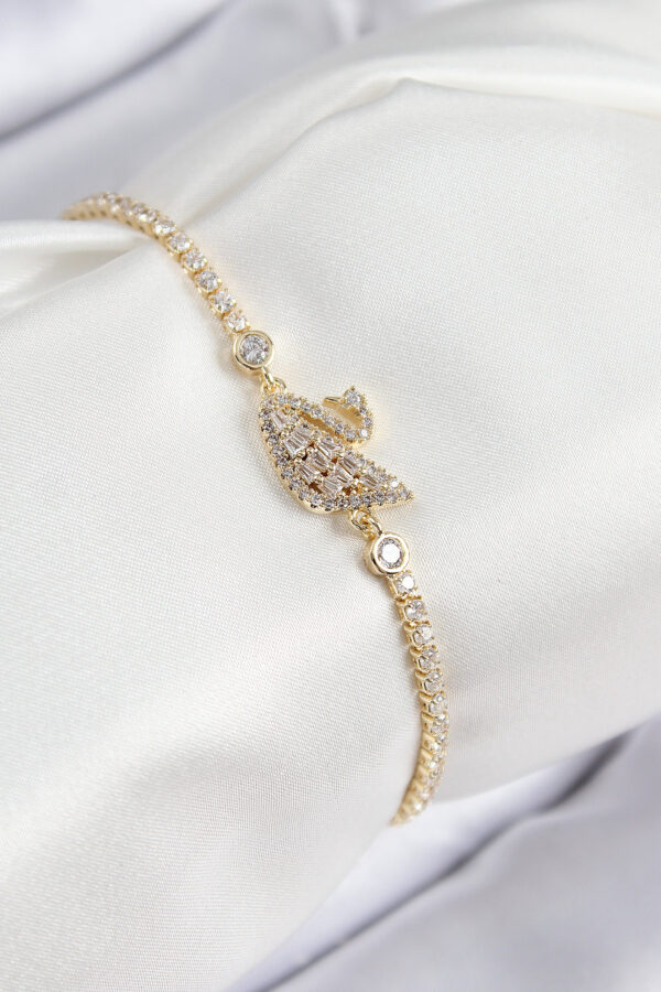 Tegan Pirinç Zirkon Taşlı Kuğu Model Gold Renk Kadın Bileklik TG27BB7691