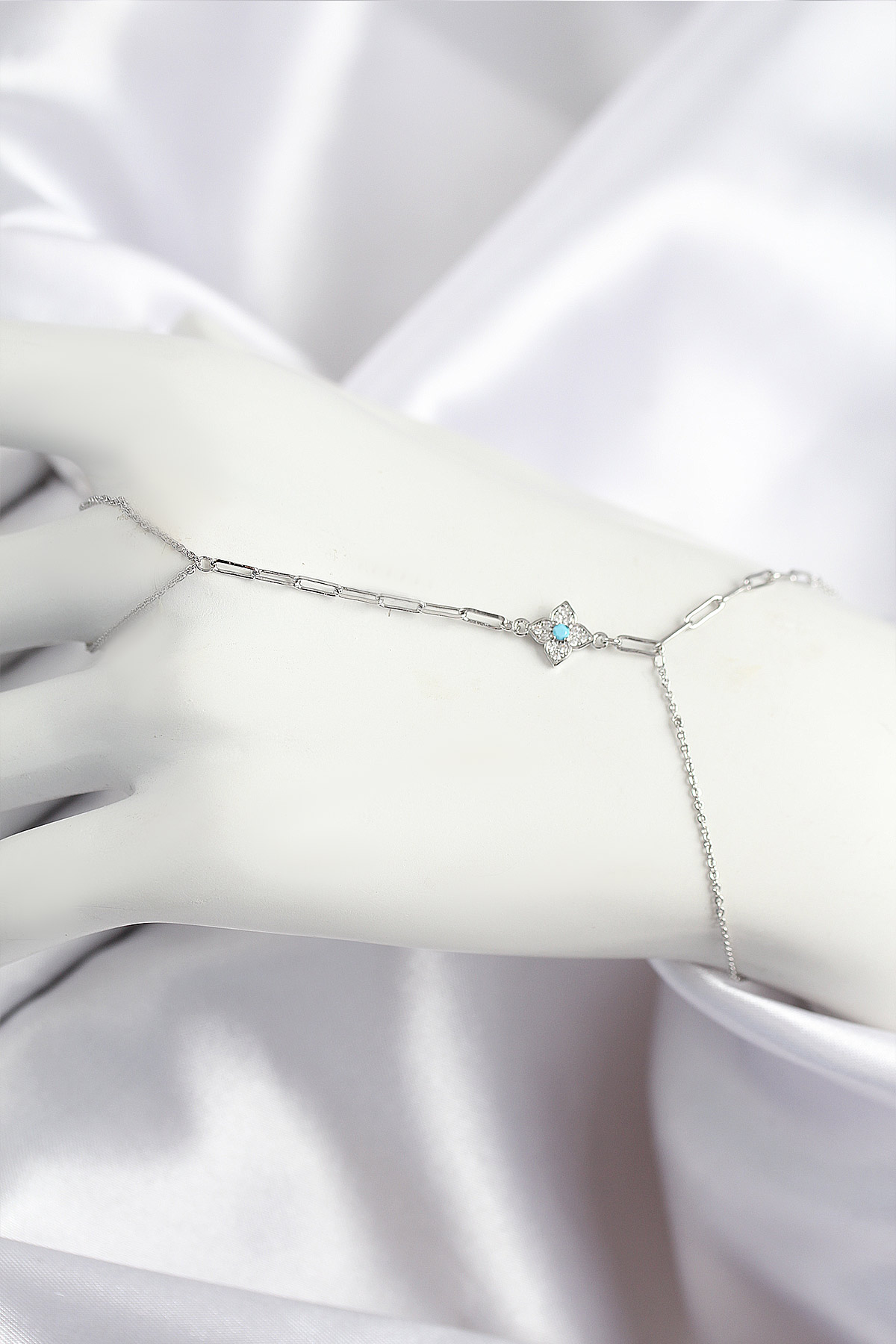 Tegan Pirinç Zirkon Taşlı Mavi Boncuklu Yonca Model Gümüş Renk Şahmeran TG27SN720