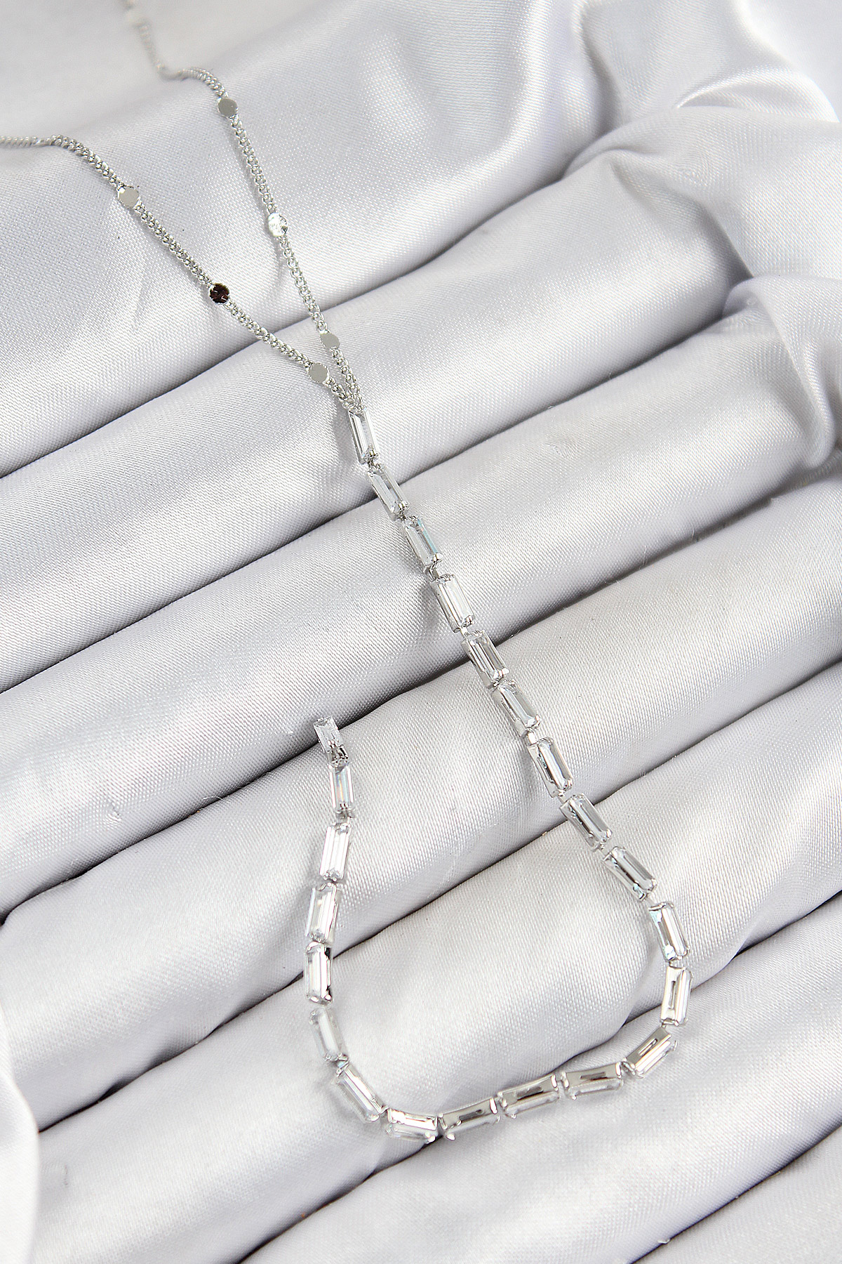Tegan Pirinç Zirkon Taşlı Model Gümüş Renk Y Kolye TG27BKO10451