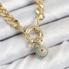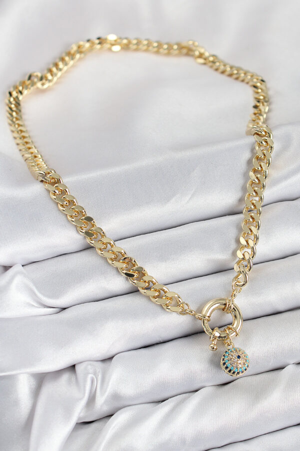 Tegan Pirinç Zirkon Taşlı Nazar Boncuk Detaylı Klasik Zincir Model Gold Renk Kadın Kolye TG27BKO10482