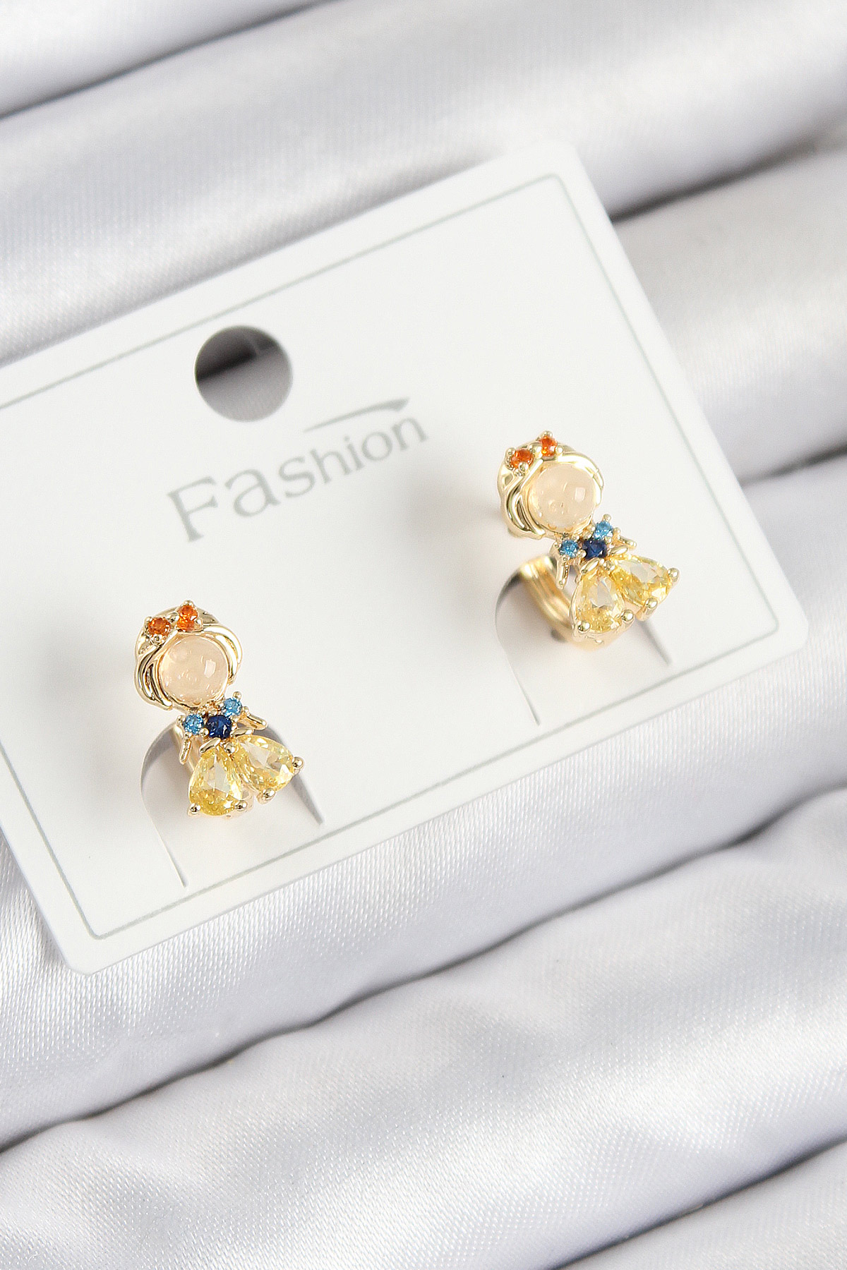 Tegan Pirinç Zirkon Taşlı Pamuk Prenses Model Gold Renk Çocuk Küpe TG27BKP11196