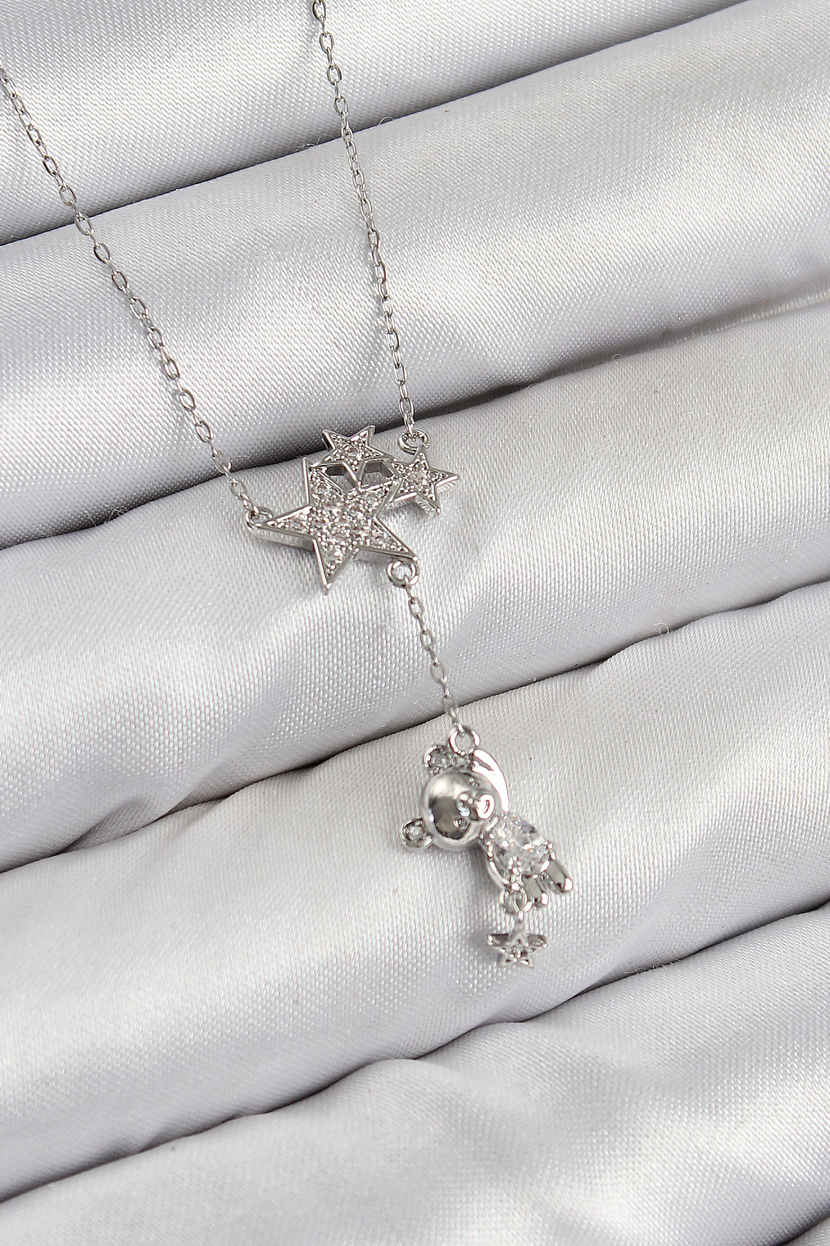 Tegan Pirinç Zirkon Taşlı Sallantılı Ayıcıklı Yıldız Model Gümüş Renk Kadın Kolye TG27BKO10419