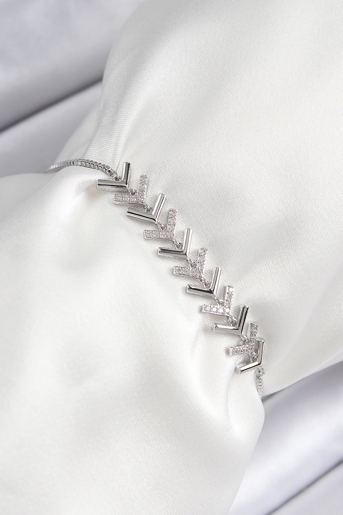 Tegan Pirinç Zirkon Taşlı Sıralı Ok Model Gümüş Renk Asansörlü Kadın Bileklik TG27BB7456