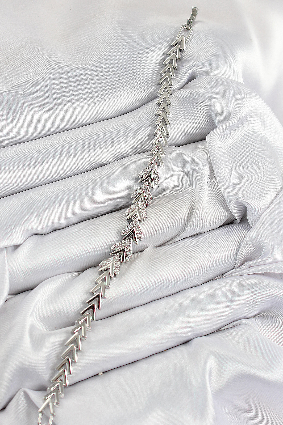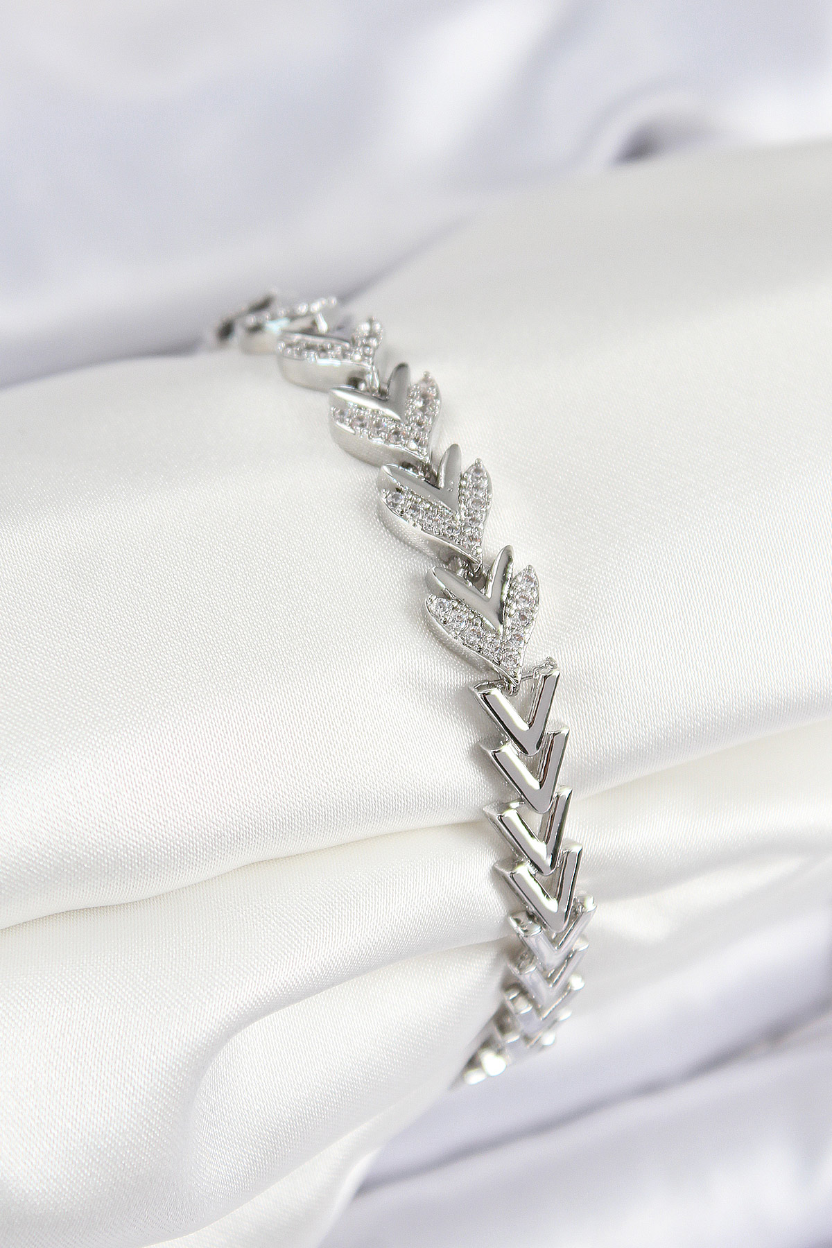 Tegan Pirinç Zirkon Taşlı Sıralı Ok Model Gümüş Renk Kadın Bileklik TG27BB7526