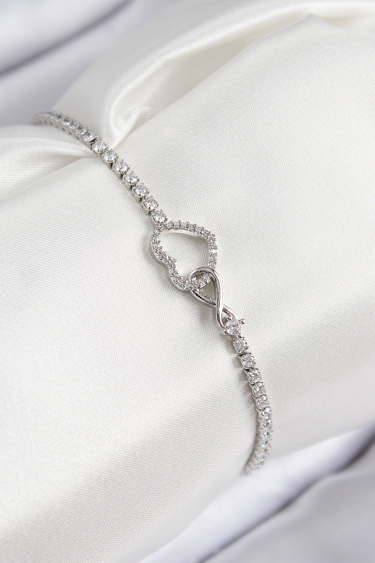Tegan Pirinç Zirkon Taşlı Sonsuzluk Kalp Model Gümüş Renk Kadın Bileklik TG27BB7692