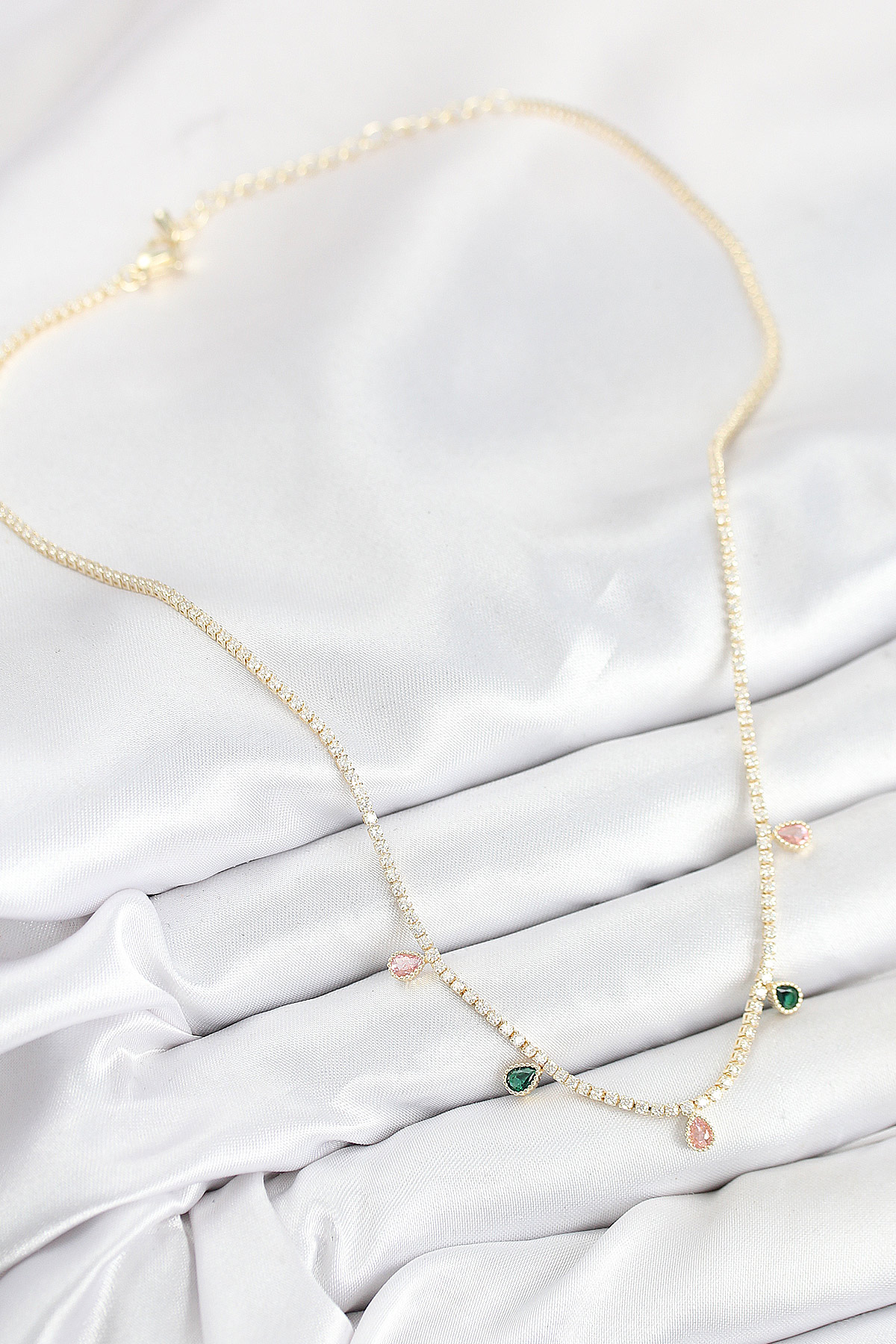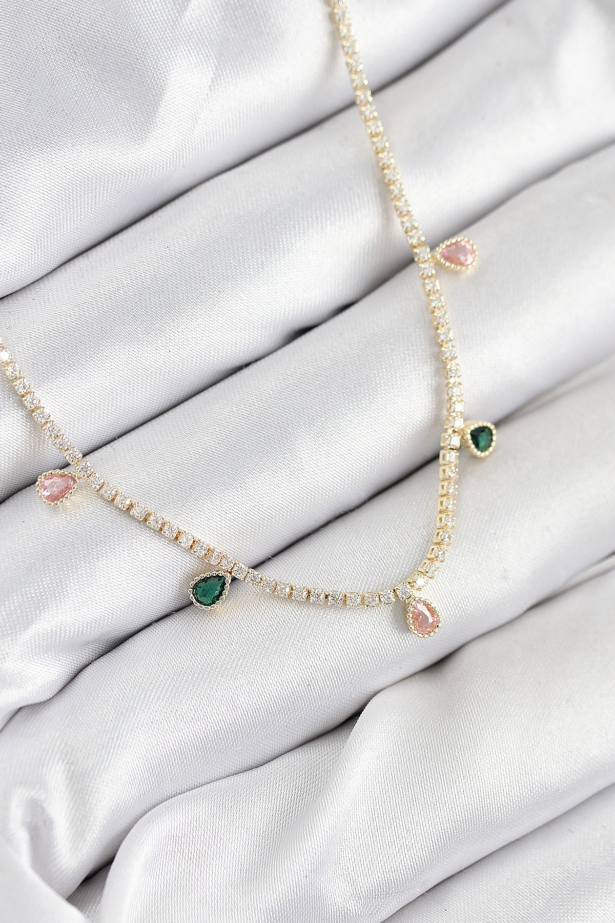 Tegan Pirinç Zirkon Taşlı Su Yolu Damla Model Gold Renk Kadın Kolye TG27BKO10545