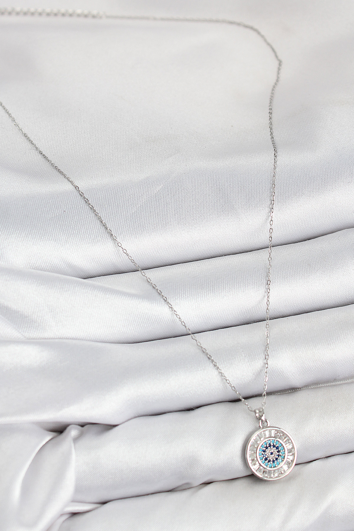 Tegan Pirinç Zirkon Taşlı Su Yolu Nazar Model Gümüş Renk Kadın Kolye TG27BKO10429