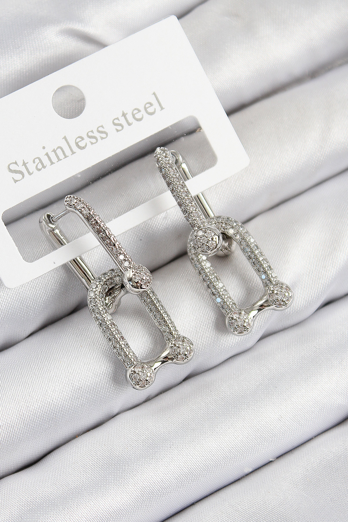 Tegan Pirinç Zirkon Taşlı Tifany Model Gümüş Renk Kadın Küpe TG27BKP11096