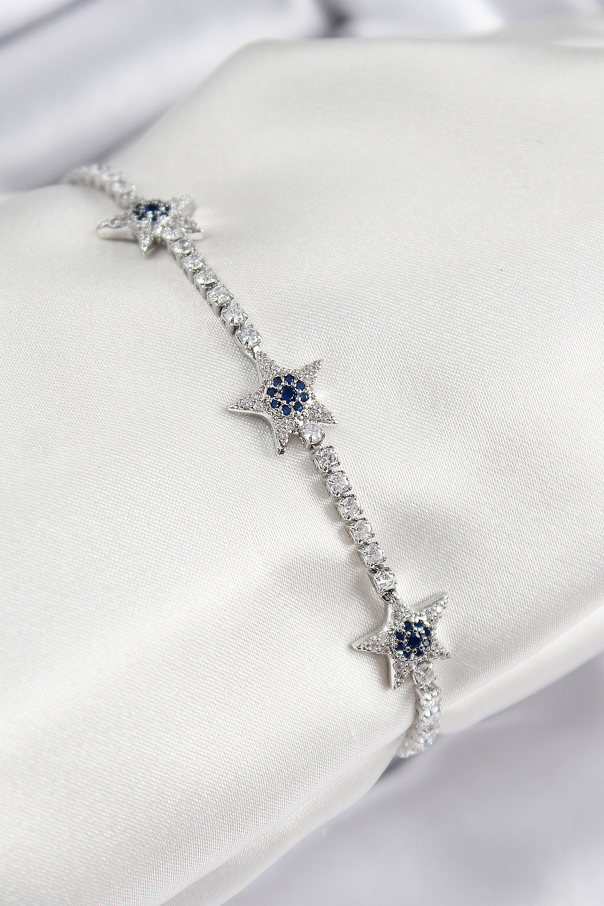 Tegan Pirinç Zirkon Taşlı Yıldız Model Gümüş Renk Kadın Bileklik TG27BB7902
