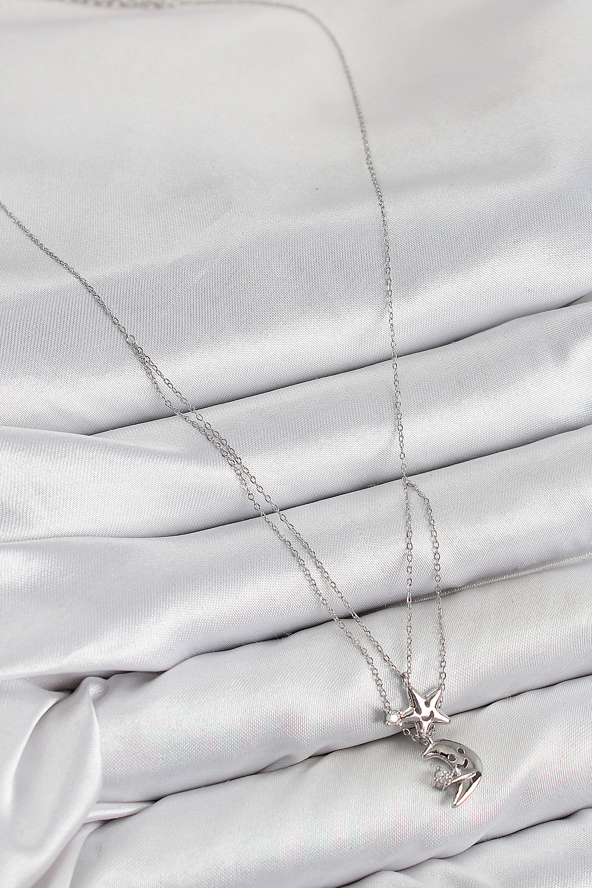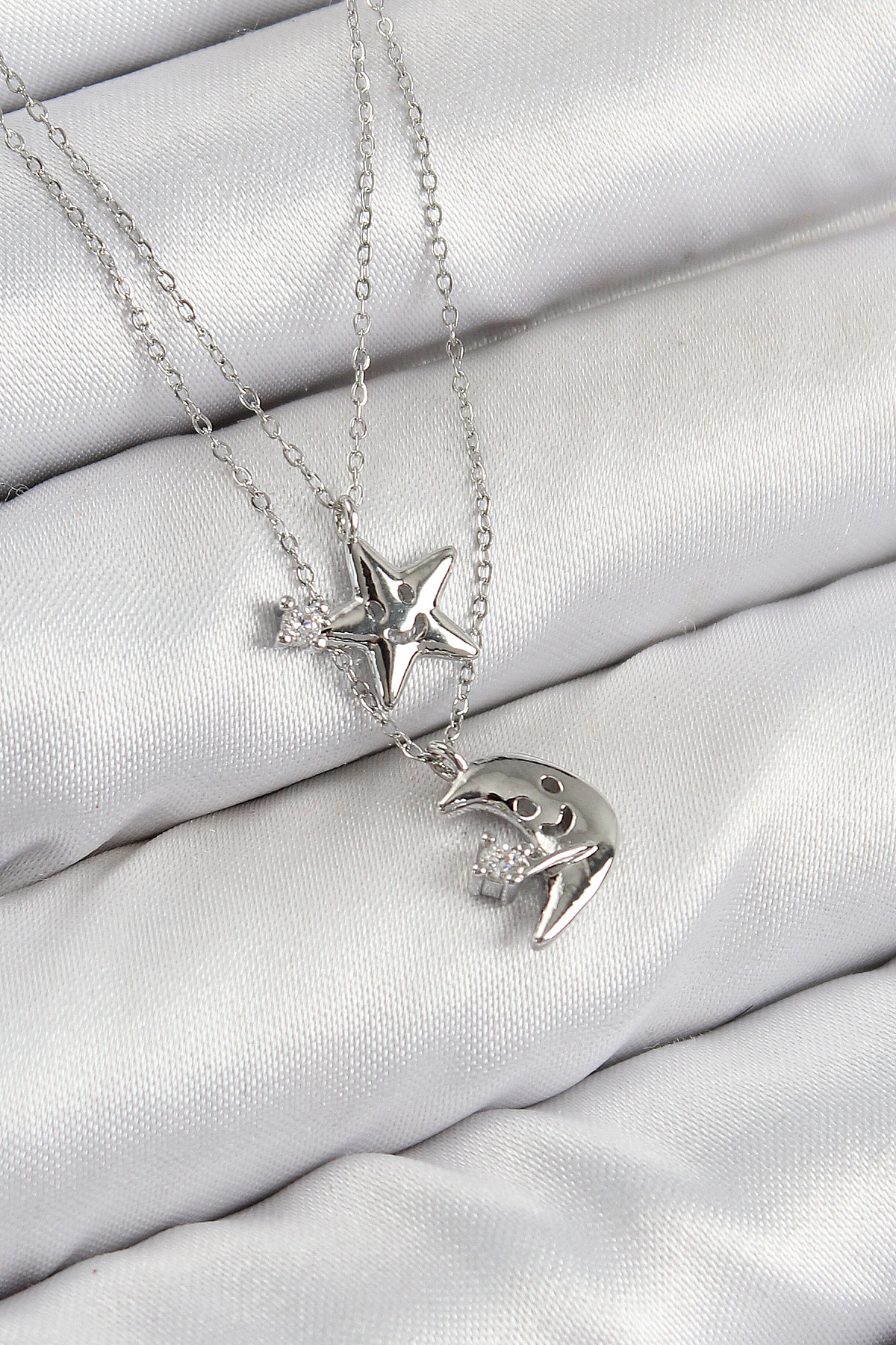 Tegan Pirinç Zirkon Taşlı Yıldız Ve Ay Model Gümüş Renk Kadın Kolye TG27BKO10423