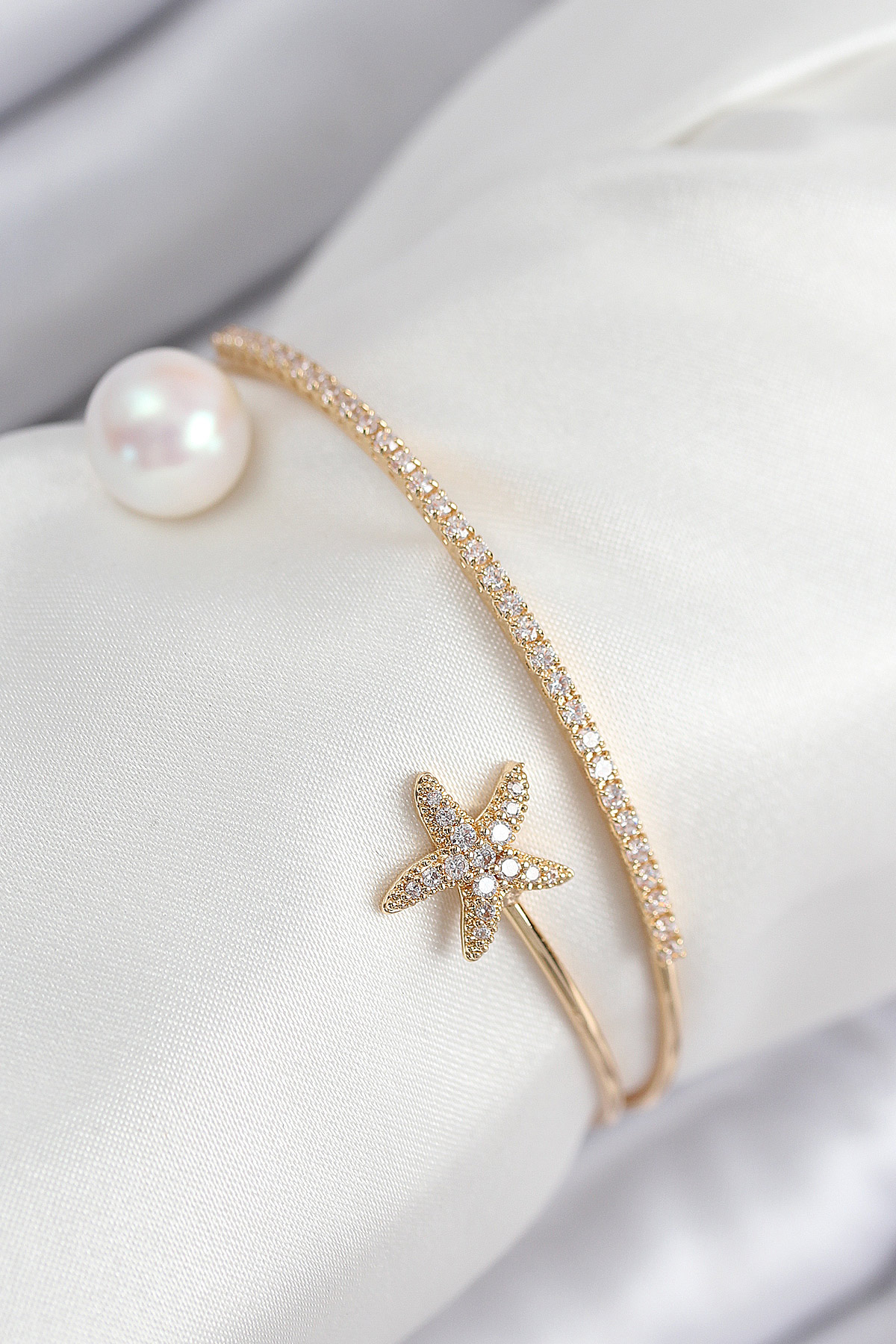Tegan Pirinç Zirkon Taşlı Yıldız Ve İnci Model Gold Renk Kadın Bileklik TG27BB7883