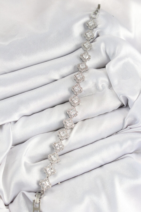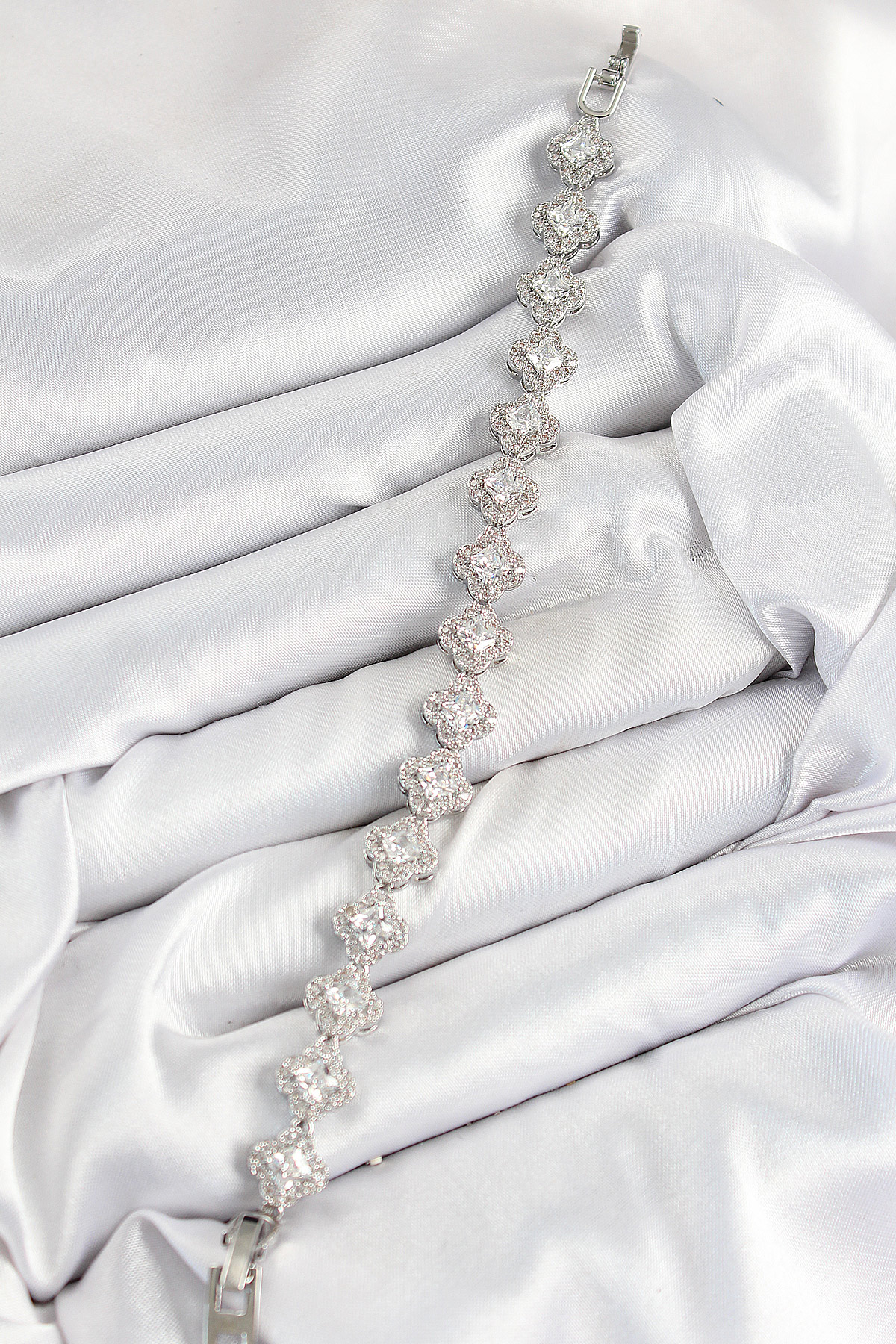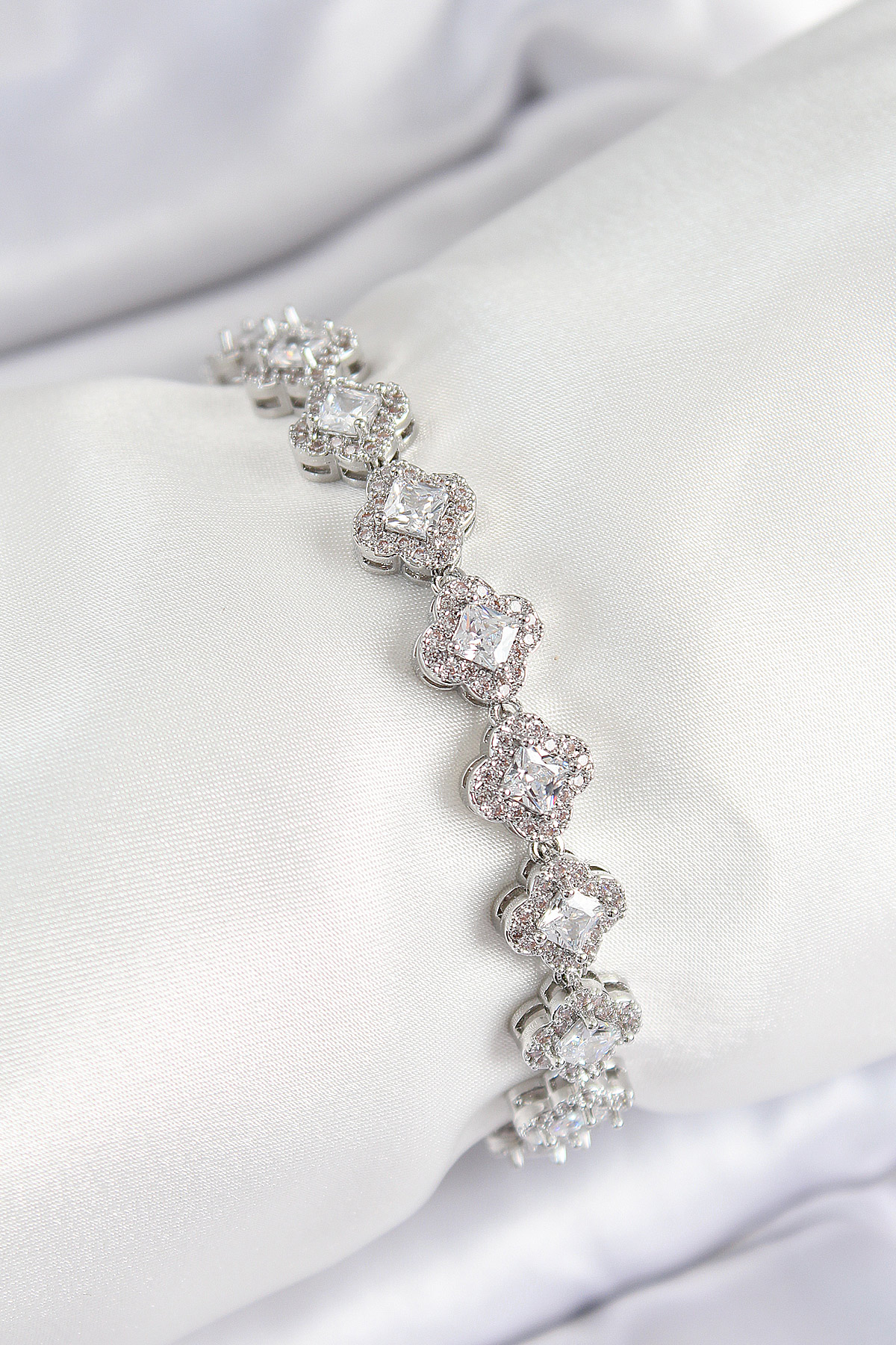 Tegan Pirinç Zirkon Taşlı Yonca Baget Model Gümüş Renk VIP Seri Kadın Bileklik TG27BB7509