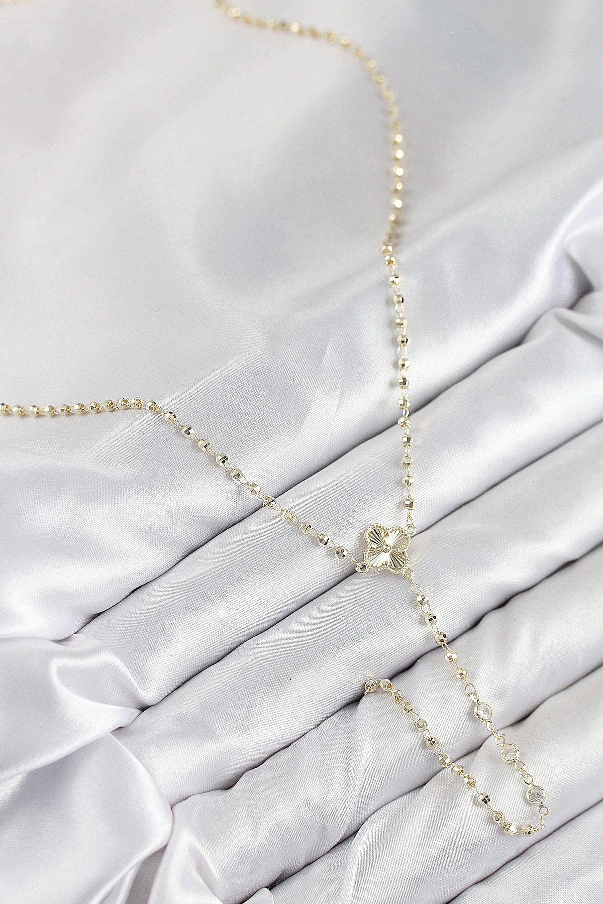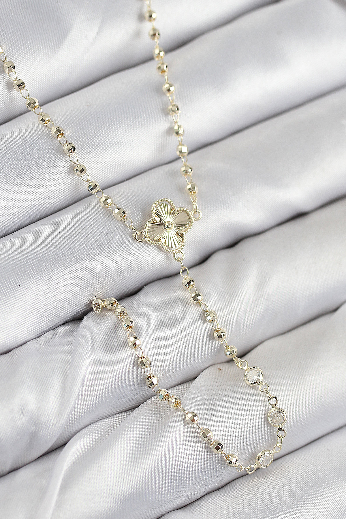 Tegan Pirinç Zirkon Taşlı Yonca Model Gold Renk Kadın Y Kolye TG27BKO10499