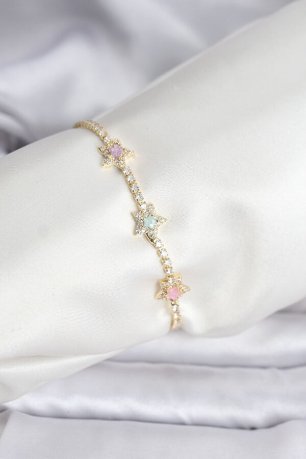Tegan Renkli Yıldız Model Zirkon Taşlı Gold Renk Pirinç Su Yolu Kadın Bileklik TG27BB8100