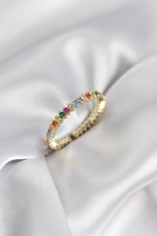 Tegan Sıralı Karışık Renkli Gold Renk Zirkon Taşlı Kadın Yüzük TG27BYK3928