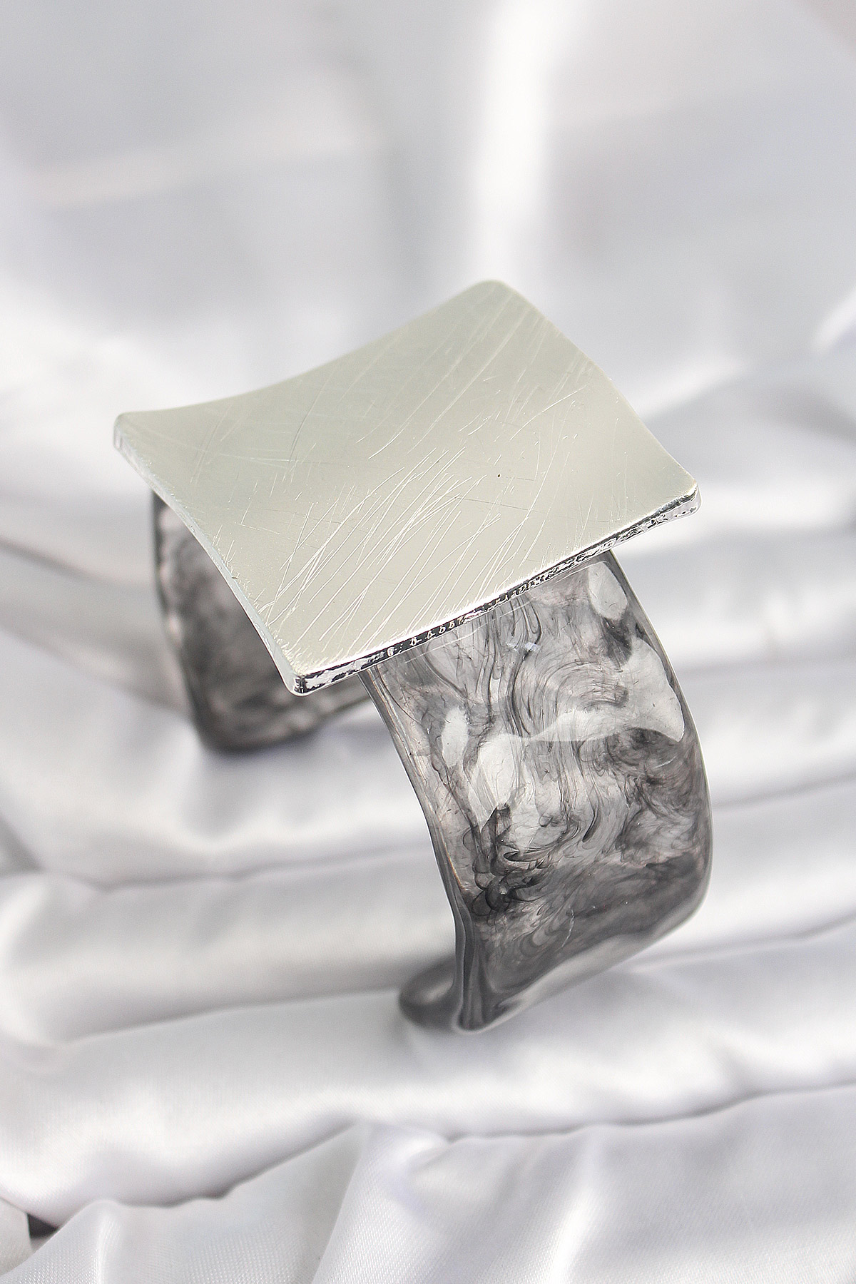 Tegan Siyah Mermer Desen Akrilik Plastik Gümüş Kare Plaka Model Vintage Kadın Bilezik TG27BB6671