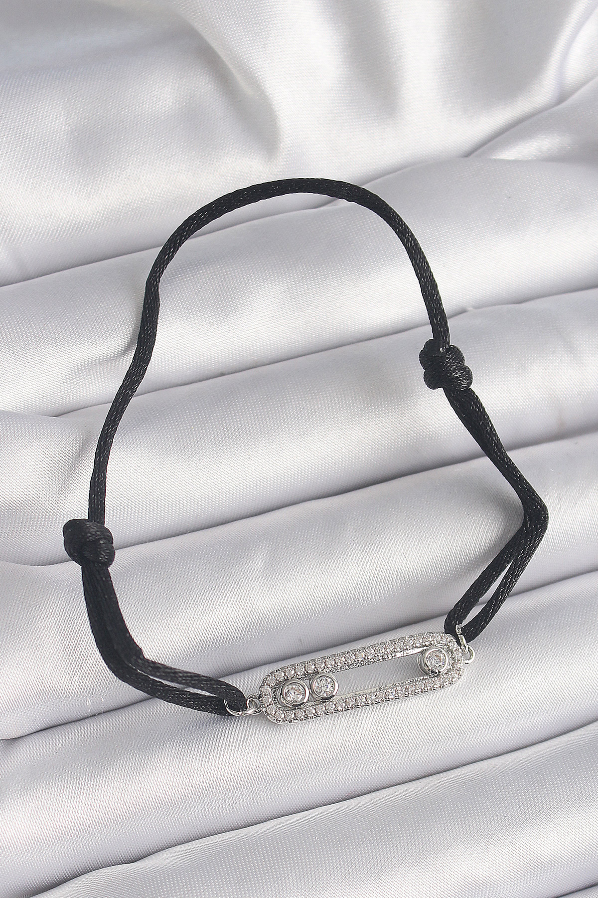 Tegan Siyah Renk İpli Asansör Zirkon Taşlı Gümüş Messika Model Kadın Bileklik TG27BB6580