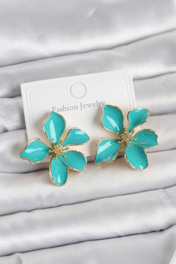 Tegan Turkuaz Mineli Çiçek Model Pirinç Kadın Küpe TG27BKP11724