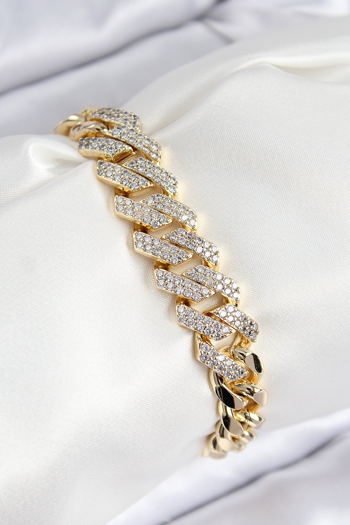 Tegan VIP Pirinç Zirkon Taşlı Cuba Model Gold Renk Kadın Bileklik TG27BB7765