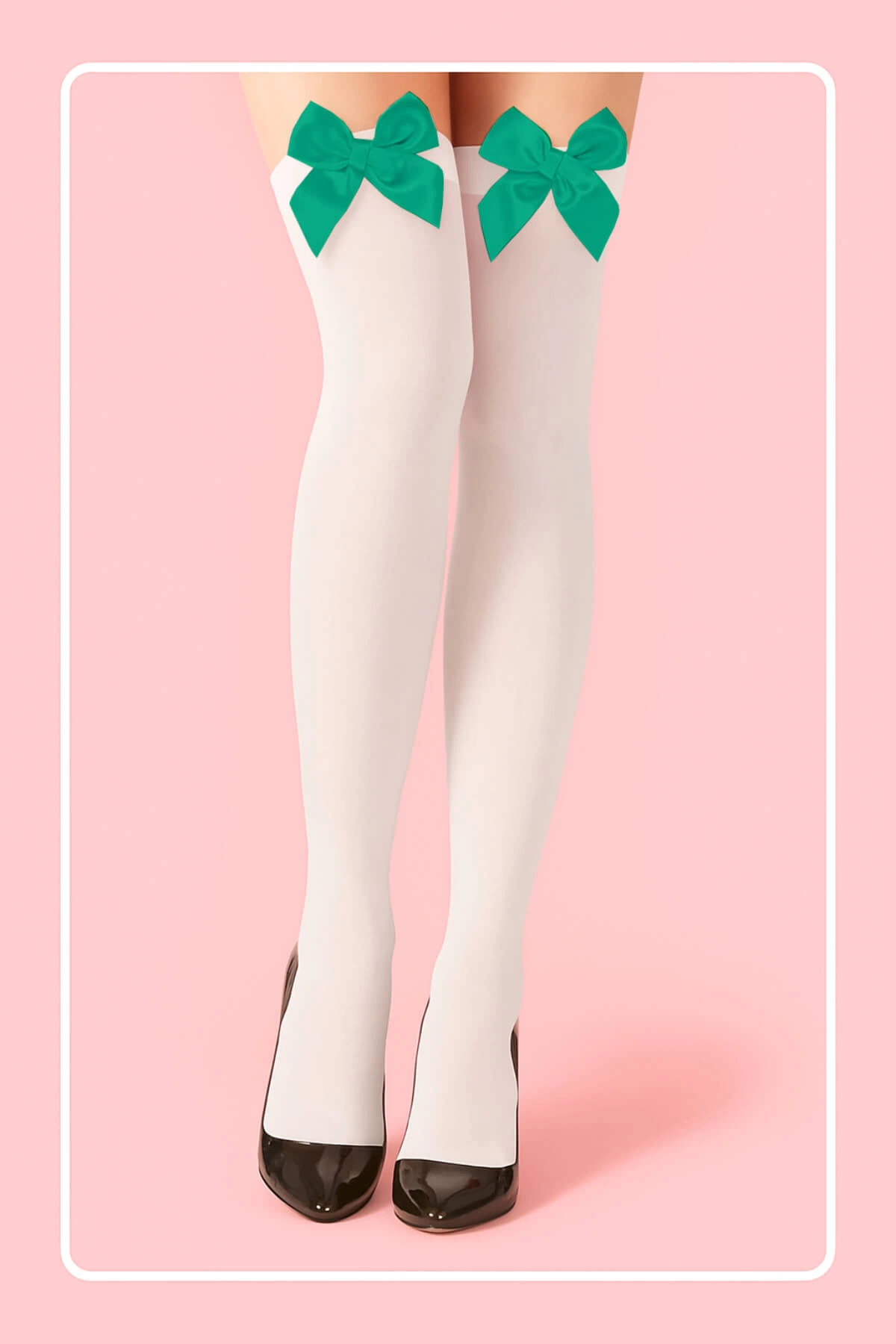 Tegan Yeşil Fiyonklu Beyaz Jartiyer Çorabı TM1380
