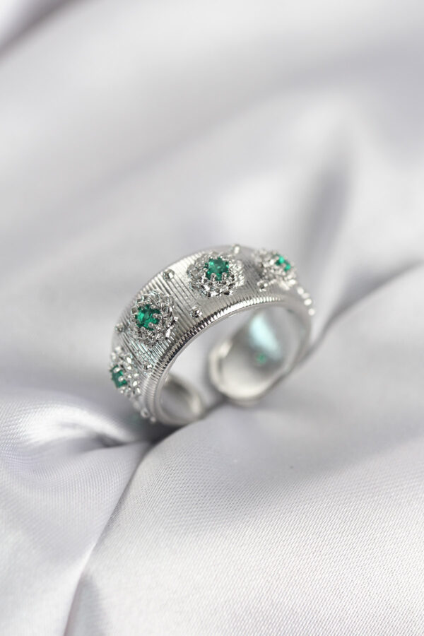 Tegan Yeşil Zirkon Taşlı Gümüş Renk Vintage Kadın Yüzük TG27BYK4083