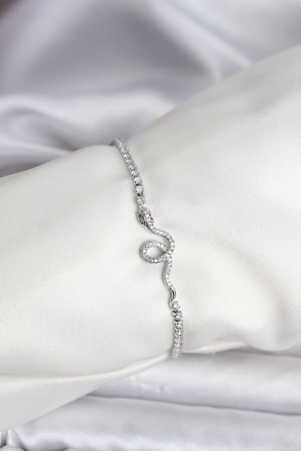 Tegan Yılan Model Zirkon Taşlı Gümüş Renk Pirinç Su Yolu Kadın Bileklik TG27BB8105