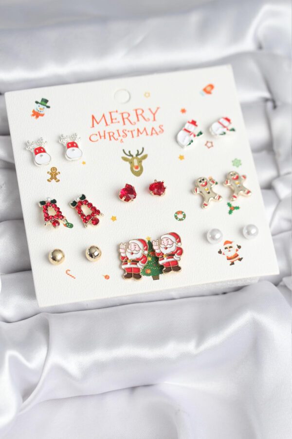 Tegan Yılbaşı Temalı Karışık Model 8 Çift Yılbaşı Temalı Kadın Küpe Seti TG27BKP11399