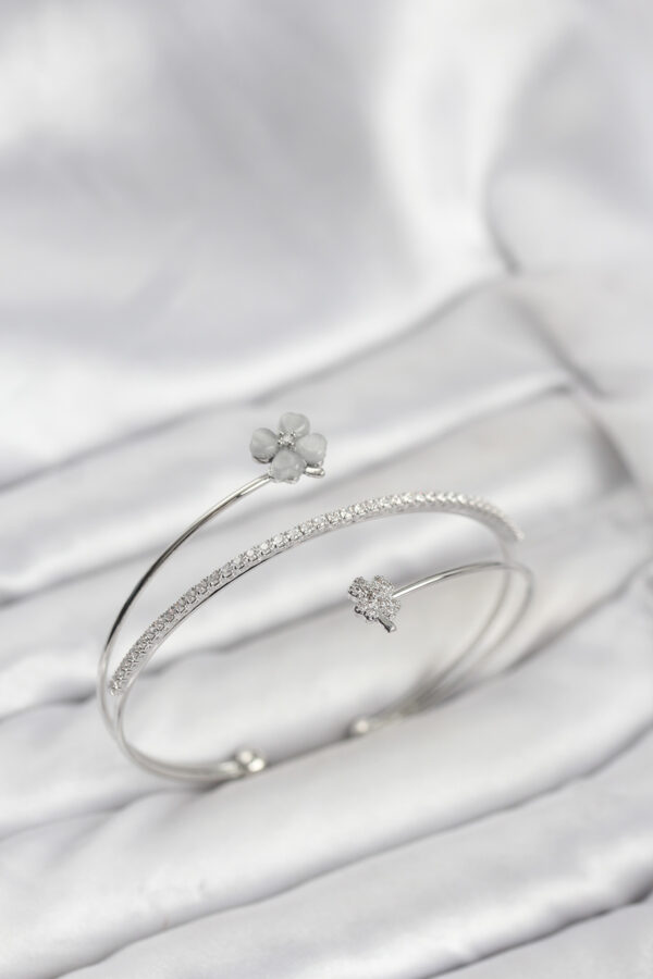 Tegan Yonca Çiçek Model Pirinç Gümüş Renk Kadın Bileklik TG27BB8258