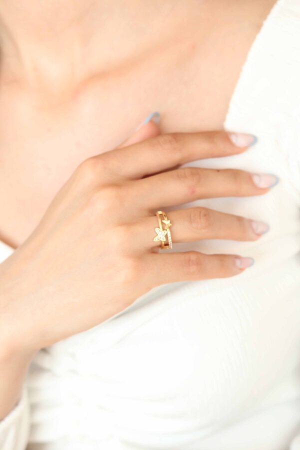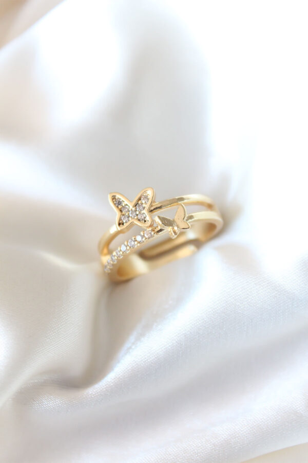 Tegan Zirkon Taşlı Altın Kaplama Kelebek Kadın Yüzük TG27BYK2321