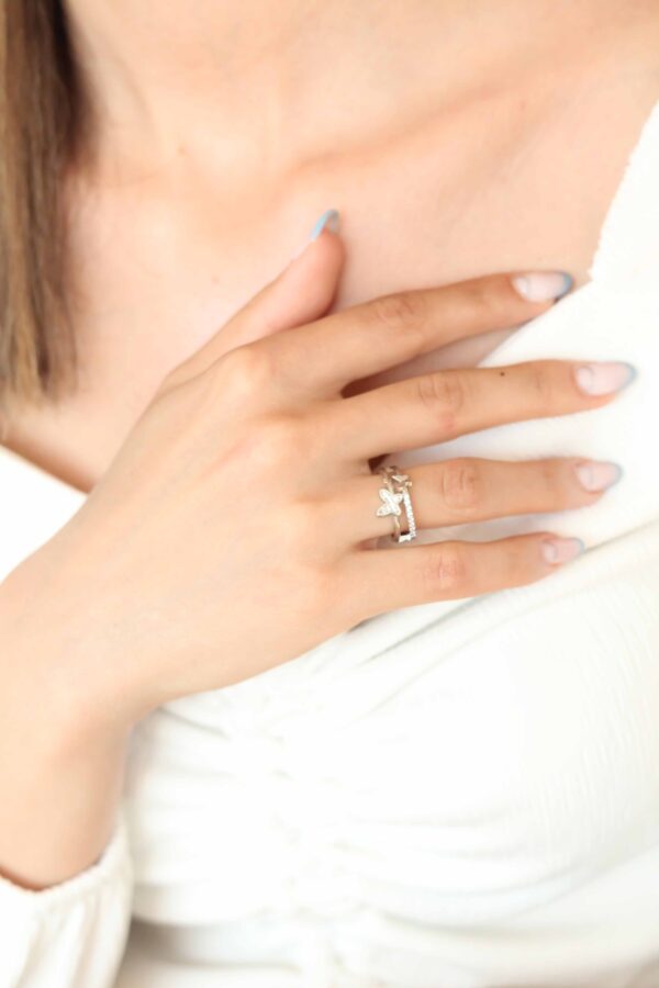 Tegan Zirkon Taşlı Gümüş Kaplama Kelebekli Kadın Yüzük TG27BYK2320